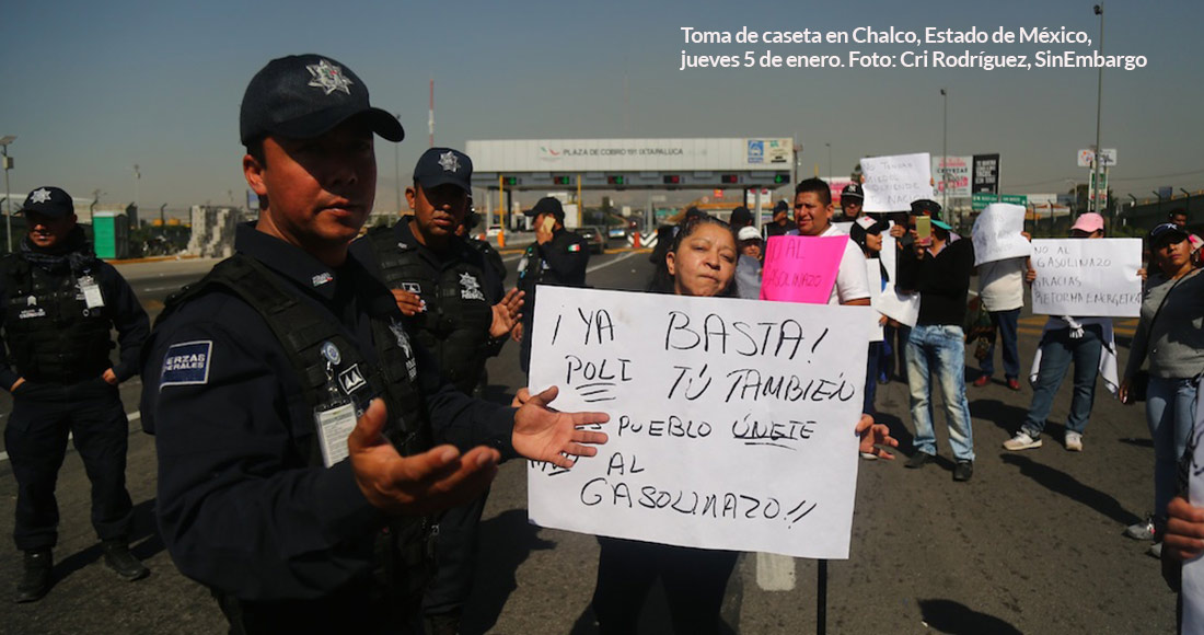 Chalco, Estado de México, 5 de enero (SinEmbargo).– No fueron el crimen ni la violencia ni la impunidad ni la corrupción, sino el alza sin precedentes en los combustibles derivada de la liberación de sus precios al dictado del mercado internacional lo que motivó a varios mexicanos a salir por primera vez a manifestar su descontento en las calles.