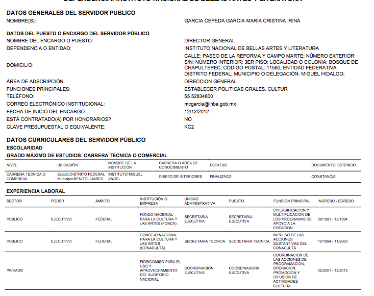 Así, informó que María Cristina García Cepeda había sido nombrada Directora del Instituto Nacional de Bellas Artes (INBA) y precedió al nombre de la funcionaria con el grado de “Doctora”. Durante dos años, esa información se mantuvo en la página oficial de la SEP.