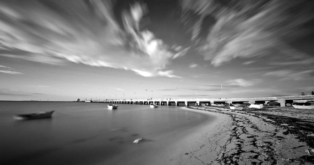 El principio del fin del encarcelamiento citadino llegó cuando nos miramos por primera vez tras los susodichos ocho años. Poco después elegimos Progreso como nuestro destino final al caer en cuenta de que, a su manera, cada uno había añorado esa pequeña localidad. Además, interpretamos esta coincidencia como una señal que tornó innegociable cualquier modificación en la ruta. Ahora bien, todo lo anterior evidencia que el argumento de la película no es en absoluto innovador, pero tampoco pretende serlo. Poco nos importa la originalidad mientras caminamos en ese puerto. Y por ello, mejor regresemos a donde nos quedamos, al segundo en que al grave silbar del viento se suma el chabacano escándalo de una antiquísima moto transitando en el solitario malecón, volvamos al graznido de las gaviotas y a la agitación de las olas, al paneo horizontal de la cámara, que se detiene en la calle 21 y elegantemente gira a medida que la rebasamos. Y entonces reanuda su andar, persiguiéndonos, enfocándonos en diagonal, siempre desde la otra acera. Al fondo de la imagen ya figura, discreto, el océano. Miles de kilómetros atrás quedaron las confusas encrucijadas, frente a nosotros se extiende la gloria del infinito.