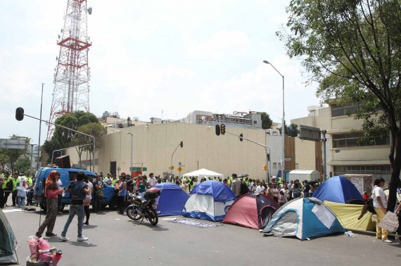 20727113. México, D.F.- Integrantes del movimiento #YoSoy 132, realizaron un plantón frente a las instalaciones de Televisa Chapultepec.