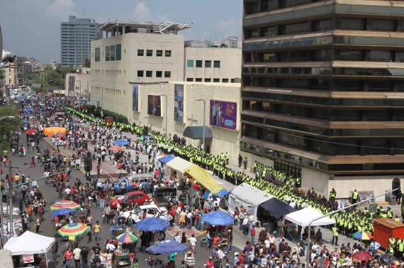 20727116. México, D.F.- Integrantes del movimiento #YoSoy 132, realizaron un plantón frente a las instalaciones de Televisa Chapultepec.