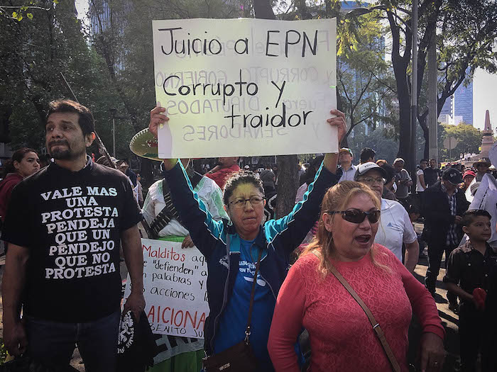 "No a los paseos de Peña, no a las pensiones de ex presidentes, ¡¡Despierta mexicano!!", eran algunas de las exaltaciones con que se dirigían los inconformes rumbo a la Colonia Juárez.