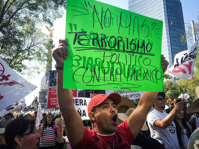 “La punta de la flecha es la gasolina”, declaró Ever López a el semanario Zeta, y abundó que la protesta es también contra la aprobación de la Ley de Agua, que abre la puerta a entidades privadas en el suministro en Baja California. “Unanse. Tú que estás mirando, también te están trazando”, dicen marchantes a espectadores, y luego entonan el Himno Nacional.