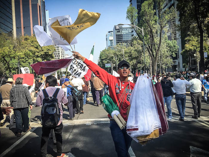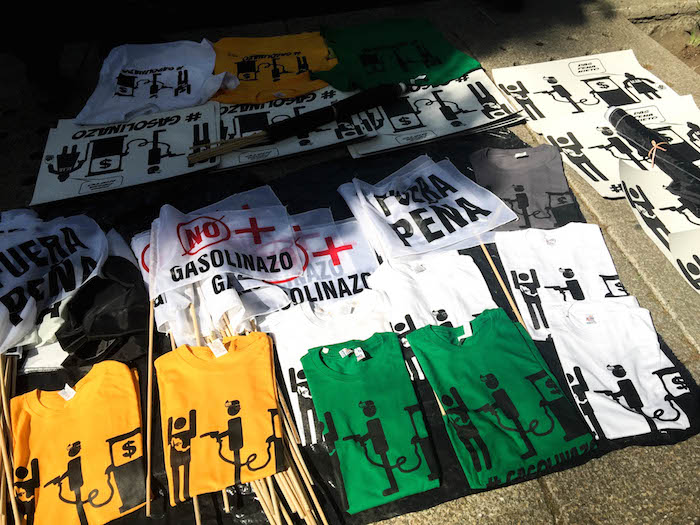 Cartulinas con leyendas de así como banderines de "Fuera Pela" y banderas negras, que eran vendidas por comerciantes ambulantes que se postraron en el lugar. Además en la zona también aprovecharon para vender playeras contra el gasolinazo.