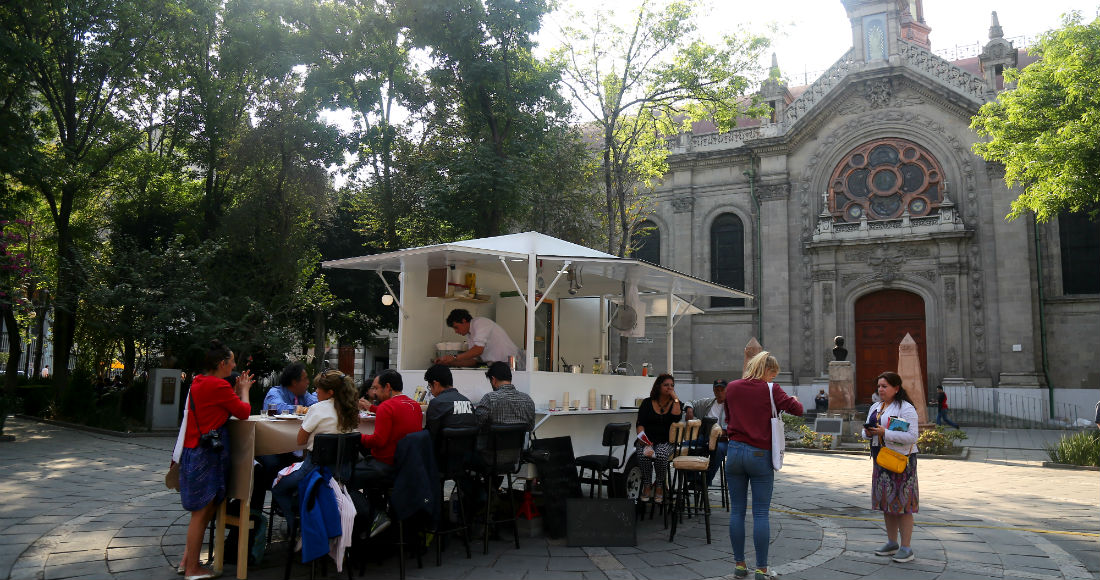 En la mesa del quiosco alemán estaban sentados un funcionario de cultura, un consultor distribuidor de mezcales oaxaqueños, un actor, un dramaturgo, una diseñadora, que comían mientras curiosos se acercaban a preguntar si eran clases de cocina, si se podían inscribir, si estaban grabando...