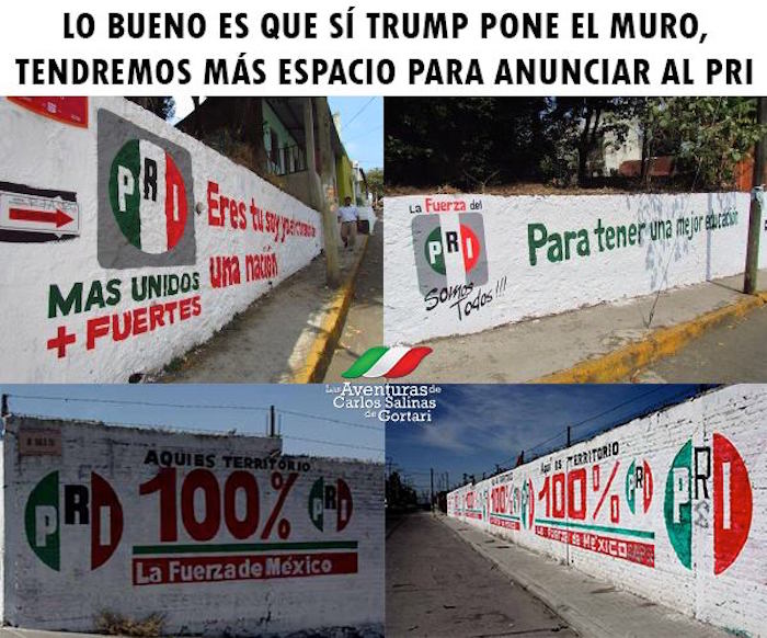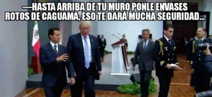 Desde el inicio de esta semana, Donald Trump informó, vía Twitter, sobre los planes de construir una barrera física que impida el paso de migrantes hacia el territorio estadounidense, proyecto que formó parte de sus compromisos de campaña y por el que México pagaría. El silencio y la permisividad del Presidente Peña Nieto ante las declaraciones de Trump generaron indignación entre los mexicanos, misma que usaron para inspirarse en la creación de memes.