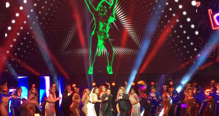 Casi 600 luces iluminaban a los artistas invitados y decenas de bailarines que interactuaban con un Juan Gabriel virtual, formado por imágenes de actores que imitaban los movimientos característicos del cantautor, combinadas con una cabeza digital y proyectadas sobre el escenario para brindar a los más de 40 mil asistentes visiones del ídolo en diferentes momentos de su carrera.