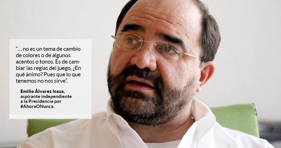 Emilio Álvarez Icaza, sociólogo y derechohumanista de 51 años, presentó el movimiento "Ahora", con el que pretende lanzar una candidatura independiente por la Presidencia de la República. Para lograrlo, el también ex ombudsman de la Ciudad de México, entonces Distrito Federal, dice confiar en que la ciudadanía del país despierte y no dé sus votos a la estructura partidista. Es, además, especialmente crítico contra Andrés Manuel López Obrador, líder de Morena y el político que lidera las encuestas de preferencias rumbo a las elecciones federales de 2018. "... creo honestamente que la historia demuestra, al menos en América Latina y en otras latitudes, que esta idea de que con la izquierda no tenemos que decir nada llevó a autoritarismos muy peligrosos”, afirma.