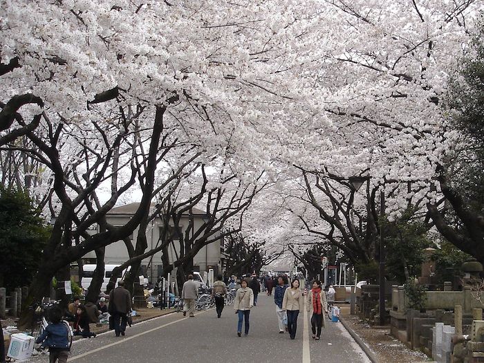 Hoy, este vecindario es un remanso de tradición en la ultra moderna Tokio (nos recuerda mucho a Kyoto). El Cementerio de Yanaka adelanta lo que nos espera a apenas un par de metros de la salida de la Estación de Nippori. Es el cementerio más grande de la ciudad y también un precioso parque que bien merece un paseo. Aquí queda de manifiesto la pasión de los japoneses por el orden y lo bonito. Grandes avenidas flanqueadas por cerezos (en Primavera están en flor y son un espectáculo increíble) y ginkos desde las que sale una verdadera multitud de veredillas que se internan en un bosque de lápidas y estatuas funerarias. Ofrendas, flores, jardines deliciosos… Te sorprenderán las filas de seis "Bosatsu" vestidos con ropas infantiles (de color rojo). Son representaciones de los seis caminos que llevan al infierno y se colocan como advertencia y también como protección de las almas de los jizô, los bebes que mueren en o antes del parto y que van al infierno por causar tristeza a sus padres. Terrible.