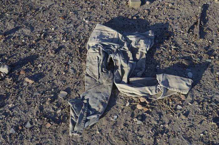 Estos pantalones son una historia. Pero no sabemos de quién. Todavía yacen en la zona de restos encontrada en San Antonio de Gurza. Foto: Vanguardia.