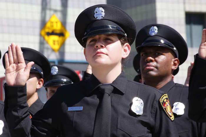 “El nombre de estos bomberos graduados está escrito con lápiz. En un año, cuando pasen su periodo de prueba, se escribirá con pluma”, menciona David Ortiz, portavoz de LAFD.