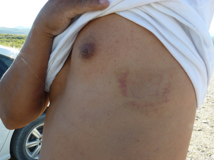 “Uno de los compañeros que estaban aquí cerca le habla a la policía y la policía entró hasta acá, pero no a ayudarnos, venía por nosotros, nos andaba correteando y pos nos tuvimos que subir para la sierra, porque aparte de que iba lastimado, si me agarraba la policía me iba a poner otra chinga más”.