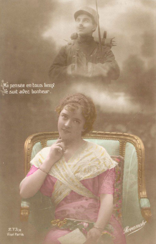 A pesar de lo cruento del conflicto había lugar para la esperanza, como lo muestran una serie de postales francesas de la época, en donde se alienta a los soldados en el frente de batalla a volver a salvo a casa. La vida desde las trincheras, sin duda, es uno de los episodios más trágicos en la historia de la humanidad, pero las tarjetas mostradas son un claro ejemplo de que a mitad de una guerra el optimismo es una herramienta esencial para la supervivencia.