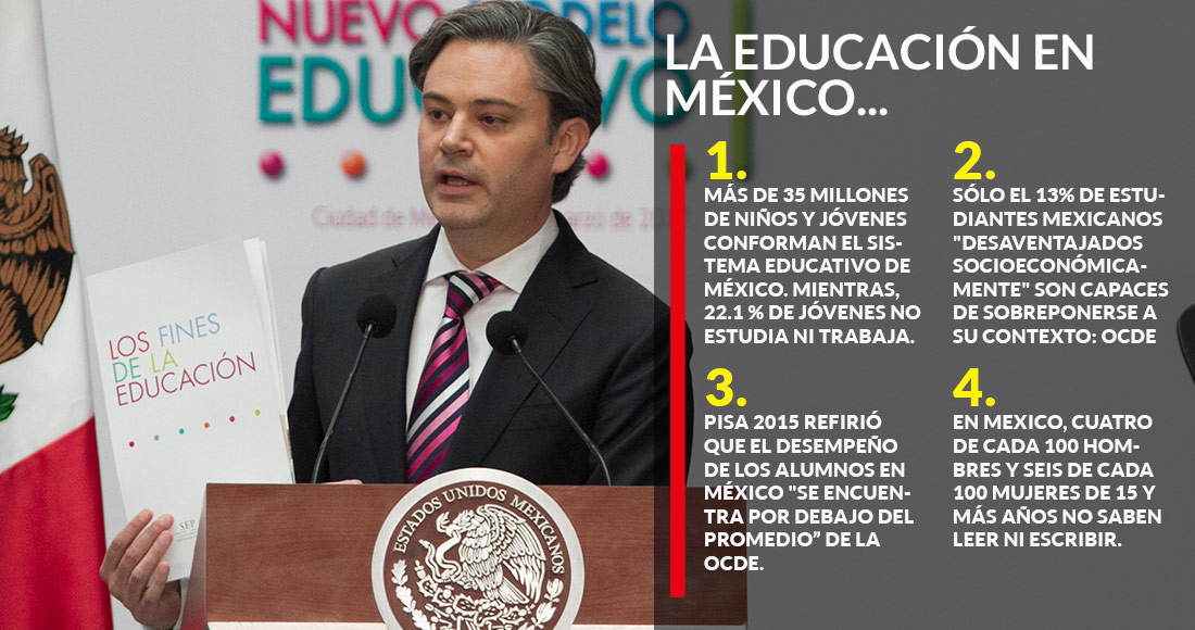 Por ahora, el Programa para la Evaluación Internacional de Alumnos (PISA) 2015 refirió que el desempeño de los alumnos en México "se encuentra por debajo del promedio” de la OCDE e hizo hincapié en que en las áreas de lectura, ciencias y matemáticas "menos del uno por ciento de los estudiantes en México logran alcanzar niveles de competencia de excelencia”.