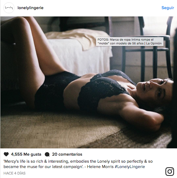 Mercy Brewer es la nueva imagen de Lonely, una compañía que rompe los paradigmas de lo que se entiende como sexy y que busca que todas las mujeres se sientan bien con sus cuerpos.