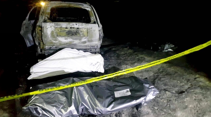 En primer reporte la Secretaría de Seguridad Pública estatal informaron que había al menos tres cuerpos en el taxi Tsuru calcinado hallado a unos 300 metros del retén militar y de la Policía Estatal, ubicado en los arcos de entrada a la ciudad.