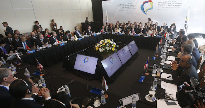 El encuentro de alto nivel se celebra hoy y mañana con la asistencia de ministros de Relaciones Exteriores y de Comercio de Australia, Brunei, Colombia, Canadá, China, Corea, Estados Unidos, Japón, Malasia, México, Perú, Nueva Zelanda, Singapur y Vietnam, además del anfitrión Chile.