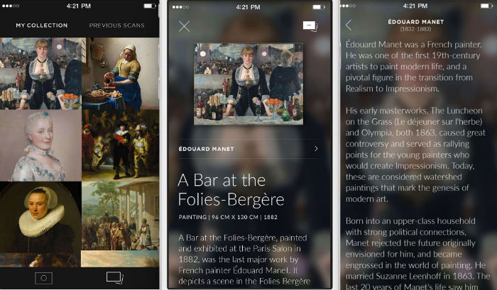 "Nuestra aplicación te permite escanear, identificar y guardar obras de arte. También sirve como guía personalizada para cualquier museo o galería con la que tengamos acuerdo", explican los creadores en su web. Smartify permitirá también consultar el lugar en el que se encuentra el cuadro en el mapa del museo. Además, dará la opción al usuario de crear colecciones personalizadas.