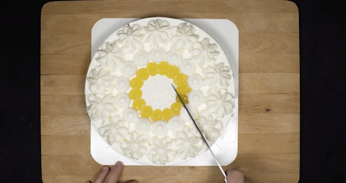 El video, creado por WunderTuetenFabrik, muestra un pastel siendo mal cortado y un jardín zen completamente destrozado.
