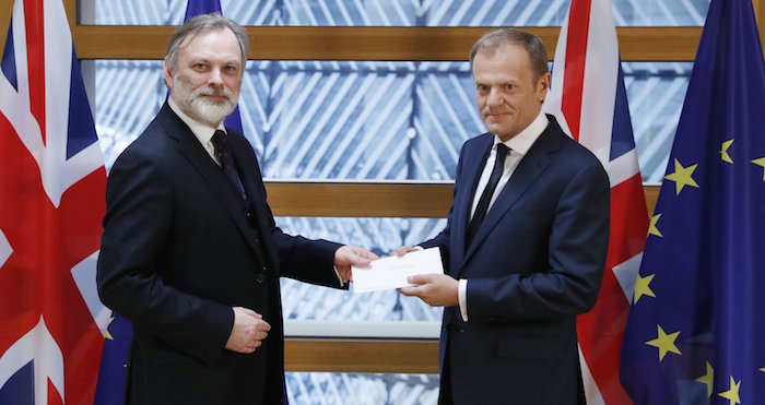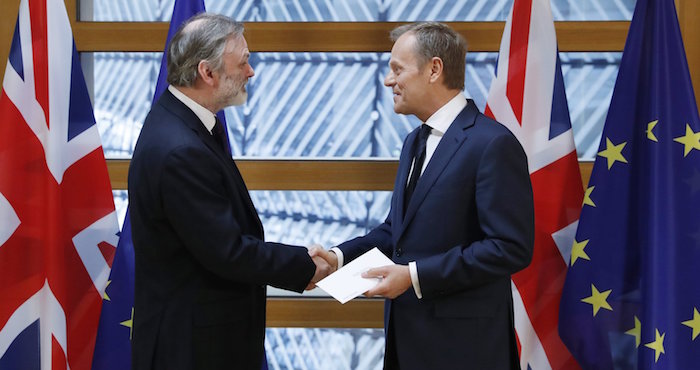 Nueve meses después de que el pueblo británico votara en referéndum la salida del Reino Unido del club de los Veintiocho, el embajador de este país ante la Unión Europea (UE), Tim Barrow, entregó hoy al presidente del Consejo Europeo, Donald Tusk, la carta de Londres que pone en marcha el "brexit".