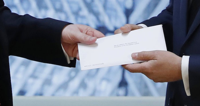 Ciudad de México, 29 de marzo (EFE).- La primera ministra británica, Theresa May, notificó hoy a la Unión Europea (UE) la salida del Reino Unido del club comunitario mediante una carta entregada al presidente del Consejo Europeo, Donald Tusk, que la recibió con "tristeza" y con la determinación de que será una marcha "ordenada".
