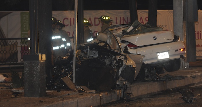 La Secretaría de Seguridad Pública indicó en un boletín que un BMW de color blanco en el que viajaban cinco personas "se impactó contra un poste de alumbrado público que se encuentra en el camellón central de dicha arteria".