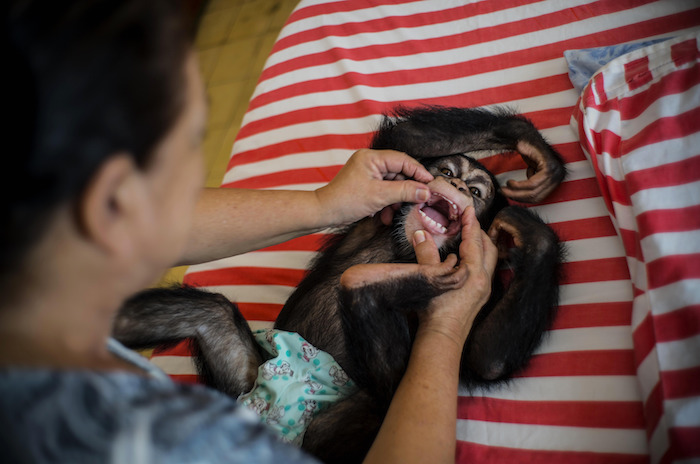 "Trato de ser una madre chimpancé. Ellos me dicen 'ju' yo también les hago 'ju''', explicó Llanes. "Hay que enseñarles a trepar, enseñarles a hacer de todo".
