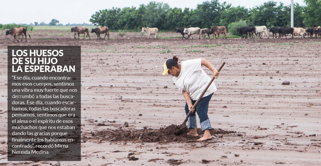 "Ese día, cuando encontramos esos cuerpos, sentimos una vibra muy fuerte que nos derrumbó a todas las buscadoras. Ese día, cuando escarbamos, todas las buscadoras pensamos, sentimos que era el alma o el espíritu de esos muchachos que nos estaban dando las gracias porque finalmente los habíamos encontrado”, recordó Mirna Nereida Medina, en entrevista telefónica con Noroeste.
