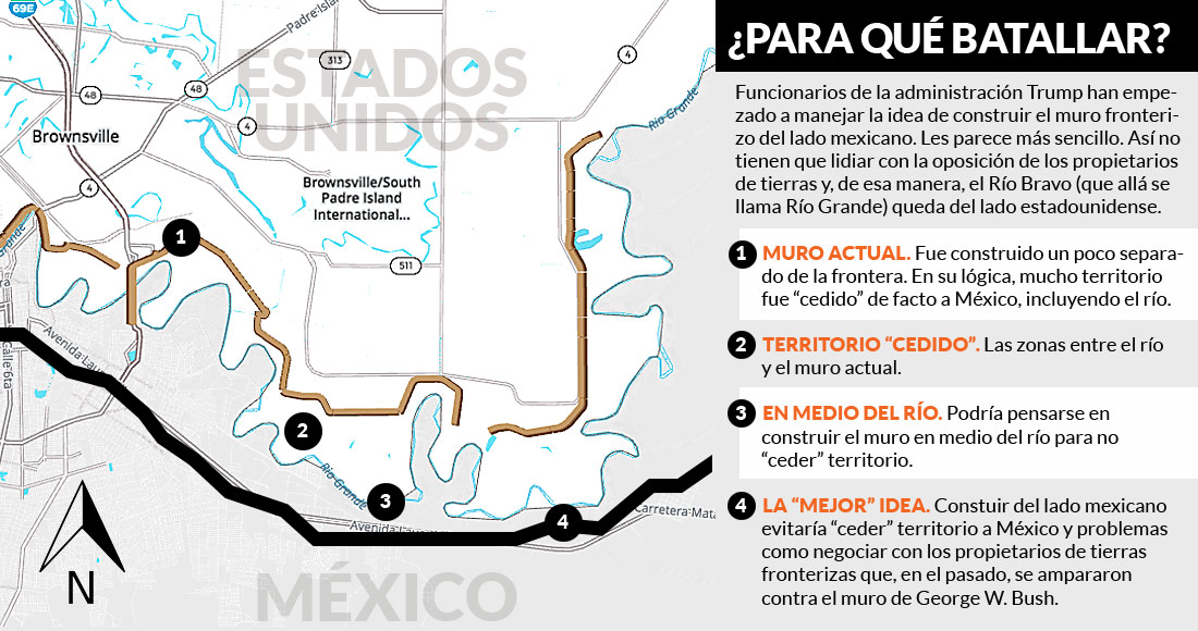 ¿Cómo construir un muro a lo largo de los mil 200 kilómetros del río Grande (río Bravo), el tramo de Texas de la frontera? ¿Lo ponen a nuestro lado y abandonan el río a México, o se apoderan del territorio mexicano, o lo ponen en medio del río, o hacen algún compromiso en zigzag? ¿Qué hace usted entonces sobre un tratado que requiere que ambos países tengan acceso abierto al río?, cuestionó el Times.