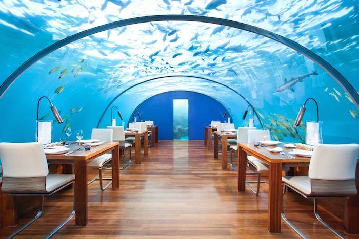 Pero no es lo único que hace al hotel Conrad famoso, pues aquí se construyó el primer restaurante bajo el agua del planeta. Sí, se puede tener una cena romántica a cinco metros bajo el nivel del mar y con vistas panorámicas a los arrecifes de coral y vida marina.
