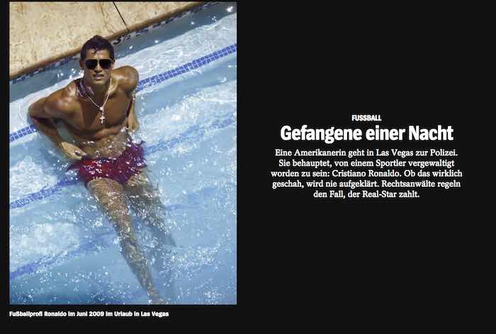 La revista alemana afirma conocer la identidad real de la demandante y tener asimismo una carta de seis páginas, dirigida en su momento a Ronaldo, en que describía lo ocurrido en esa madrugada, junto con lesiones que presuntamente sufrió.