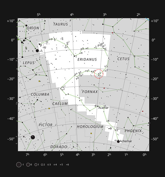 La galaxia NGC 1187 [1] se ve casi de frente en la nueva imagen del VLT, la cual muestra con claridad su estructura espiral. Se puede observar alrededor de media docena de brazos espirales prominentes, cada uno de los cuales contiene grandes cantidades de gas y polvo. Los rastros azulados de los brazos espirales indican la presencia de estrellas jóvenes nacidas de las nubes de gas interestelar.