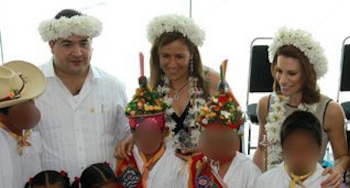 En la imagen se observa a la esposa del ex Presidente de México, Felipe Calderón Hinojosa, con Javier Duarte y su esposa Karime Macías.