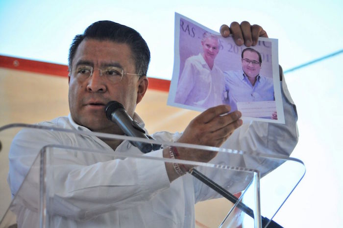 "Que nos aclare, dónde andaban, qué negocios andaban haciendo porque no se vale decir que ahora ya no lo conocen, por eso aquí está la foto de Alfredo del Mazo, que diga qué hacía con Javier Duarte, aquí, miren, le está entregando un cheque, ¿de qué se trataba? ¿De qué negocios? Porque, si no lo aclaran, está claro que son lo mismo, porque son del mismo sistema", sostuvo el también representante de Morena ante el Instituto Nacional Electoral (INE).