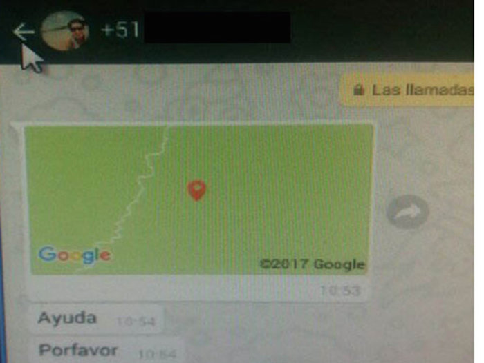 "Ayuda, por favor, ayuda, por favor", escribió Taipe acompañado de un mapa con su ubicación en el GPS de su teléfono y una fotografía suya sangrando y vendado.
