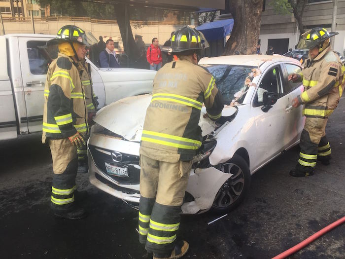 Siete personas resultaron con lesiones, dos de ellos más graves, fueron trasladados a un hospital en Polanco. De acuerdo con información brindada por elementos policiacos que acudieron a atender el reporte, los heridos que fueron trasladados a los nosocomios fueron identificados como Alberto Ruiz, quien resultó con mayores lesiones, al parecer fractura en ambas piernas; también la señora identificada como Soledad Flores.