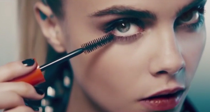 La publicidad –que se comenzó a emitir en diciembre- muestra a la modelo Cara Delevingne aplicándose la máscara "Scandaleyes Reloaded" mientras una voz en off habla del "cepillo de máxima densidad" que resulta en "pestañas sin grumos" y en un "volumen extremo".