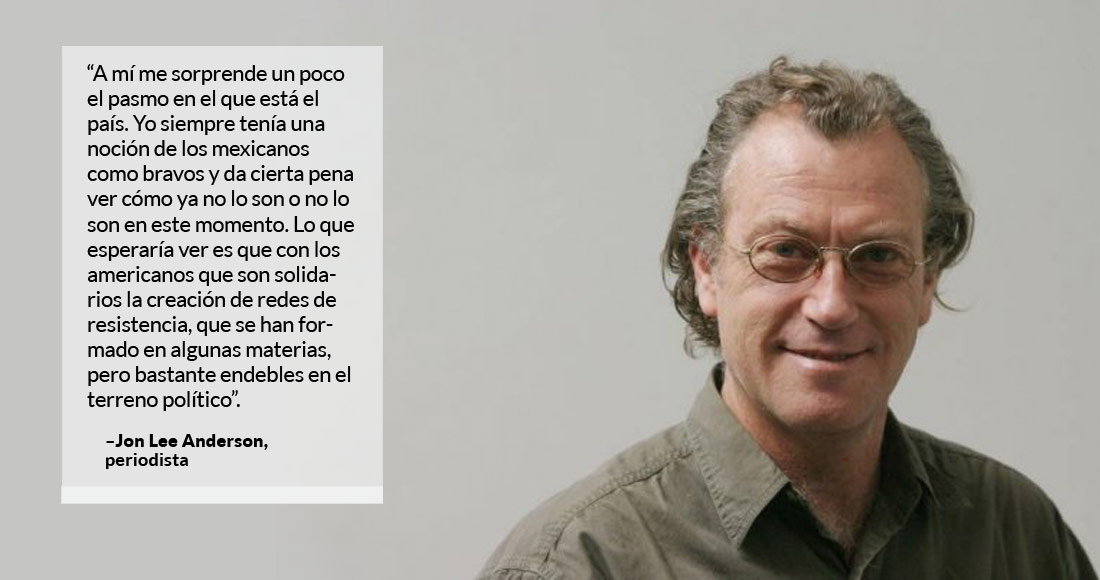 –A mí me sorprende un poco el pasmo en el que está el país. Yo siempre tenía una noción de los mexicanos como bravos y da cierta pena ver cómo ya no lo son o no lo son en este momento. Lo que esperaría ver es que con los americanos, que son solidarios, la creación de redes de resistencia. Que se han formado en algunas materias, pero bastante endebles en el terreno político.