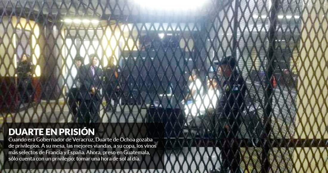 Cuando era Gobernador de Veracruz, Duarte de Ochoa gozaba de privilegios. A su mesa, las mejores viandas, a su copa, los vinos más selectos de Francia y España. Ahora, preso en Guatemala, sólo cuenta con un privilegio: tomar una hora de sol al día. Los encargados del penal son quienes deciden el momento en que la tomará y siempre será distinta a la de otros reos para reducir al mínimo la convivencia.