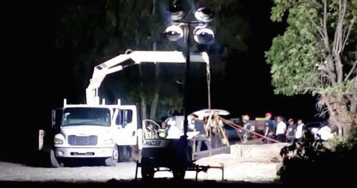 Los rescatistas tuvieron que vaciar agua a través de una bomba de bomberos para que el cuerpo flotara a una distancia considerable para que un rescatista de protección civil del estado ingresara para extraer el cuerpo.