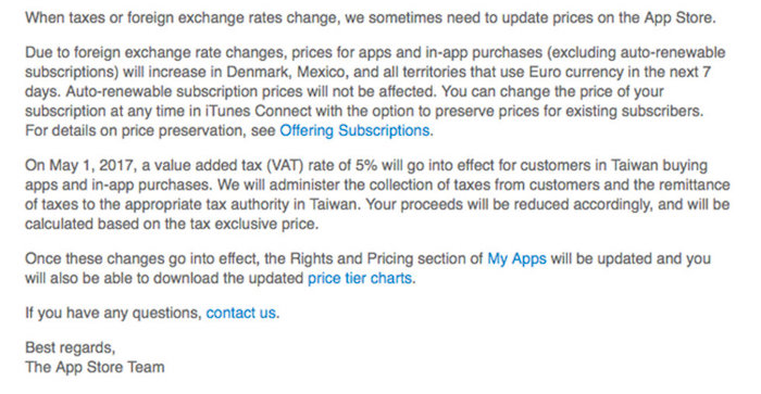 La empresa informa, que los precios de las suscripciones con renovación automática permaneceran con el mismo costo, pero los desarrolladores podrán cambiar el precio de las suscripciones en cualquier momento con iTunes Connect en la opción de preservar los precios para los suscriptores existentes.