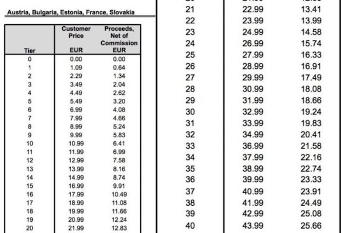 En dicha tabla, puede observarse que una aplicación que costaba 1 euro (alrededor de 20 pesos mexicanos), ahora costará 1.10 (alrededor de 22 pesos). Mientras que el incremento puede no parecer mucho, para aplicaciones de mayor precio, el incremento podría llegar a ser hasta de la cuarta parte del costo original de la app.