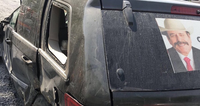 La camioneta donde viajaba Flores Hurtado. Foto: Especial.