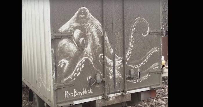 Ciudad de México, 4 de abril (SinEmbargo).- El artista Nikita Goluveb encontró una mayor utilidad en los automóviles sucios que circulan por las calles de Rusia.