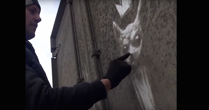 En un video difundido en redes se aprecia cómo Goluveb, quien lleva un diseño en papel, localiza un camión lleno de polvo e inicia el proceso.