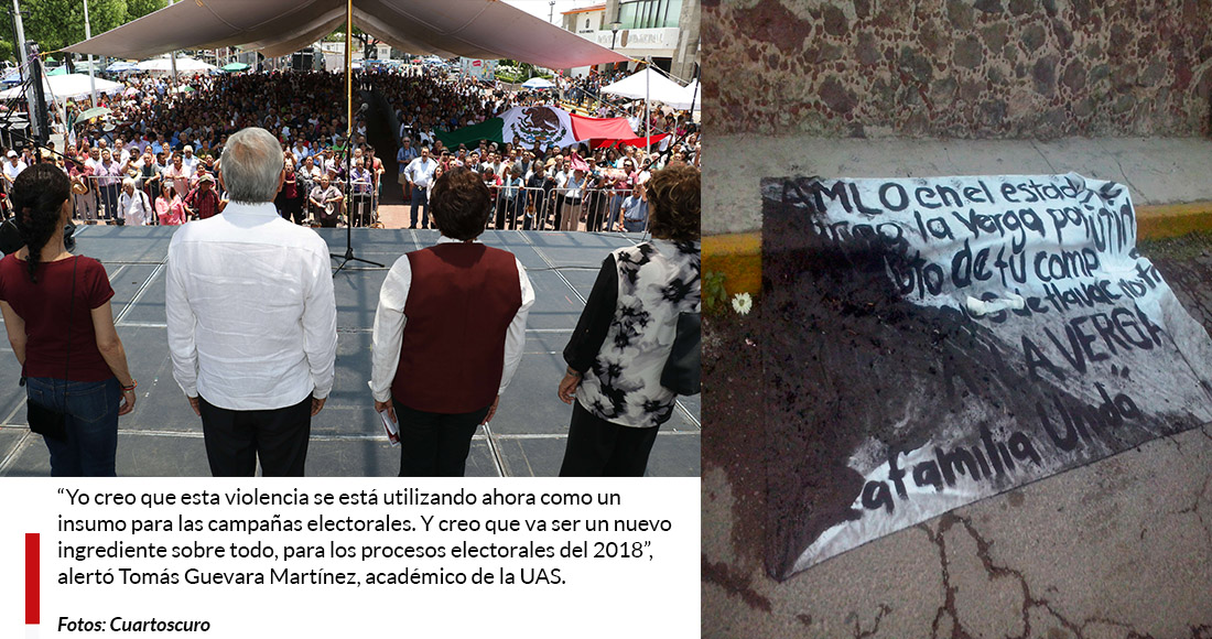 El crimen múltiple, a un mes de la elección para Gobernador en el Estado de México, se suma a la colocación de dos mantas que, el pasado 29 de abril, aparecieron en los municipios de Acolman y Chimalhuacán con amenazas para Andrés Manuel López Obrador, aspirante presidencial del Movimiento de Regeneración Nacional (Morena).