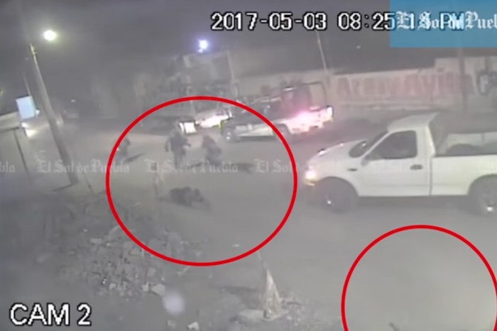 Ayer se difundieron dos videos en medios de Puebla, en uno se sugiere que un militar dispara en contra de un civil sometido y en el otro, que un civil detona su arma en contra del soldado.