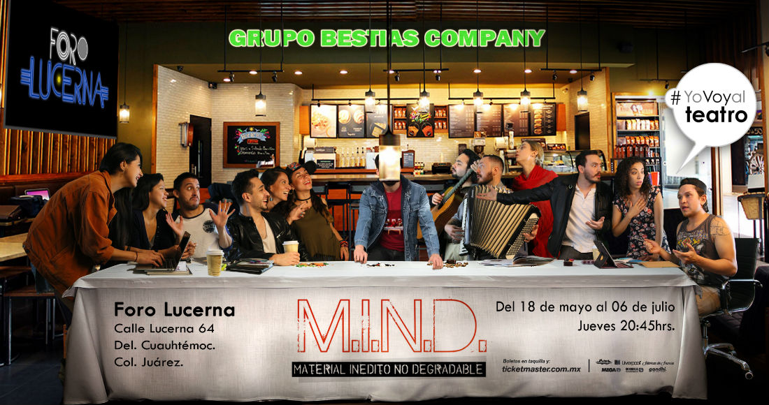 Sinopsis: M.I.N.D. es un espectáculo con sketches de comedia y música en vivo, que cambia semanalmente, estos sketches son escritos por el elenco del Grupo Bestias