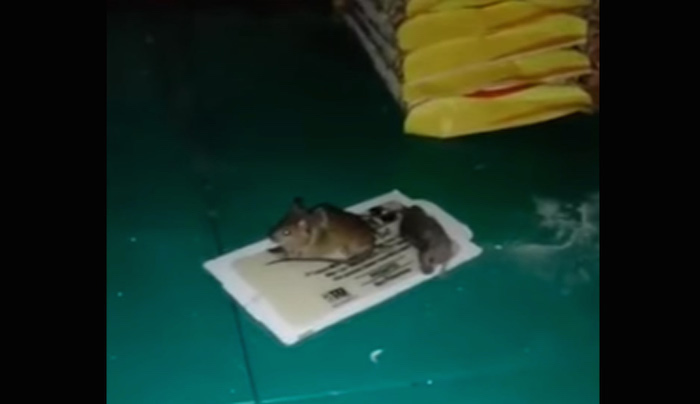 En un video compartido por Denuncia Ecatepec se muestra a un par de ratones atrapados detrás de alimentos en un Aurrera de Ecatepec.