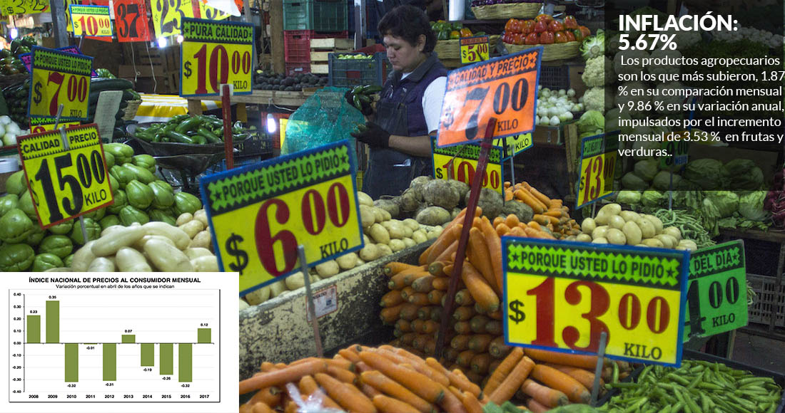 El aumento, dijo Siller, obedece a que se está traspasando la fuerte depreciación del peso de principios de año a los precios al consumidor, y pese a que la moneda nacional se ha recuperado desde los 22.50 pesos por dólar en los que cotizó en enero, los precios en México "normalmente suben pero no se corrigen a la baja".